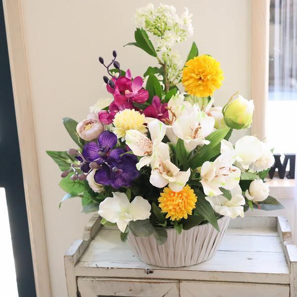 造花 仏花 デンファレとミニローズのプチアレンジ ct触媒 シルクフラワー 造花 お供え花 お彼岸 お盆 お仏壇 仏花