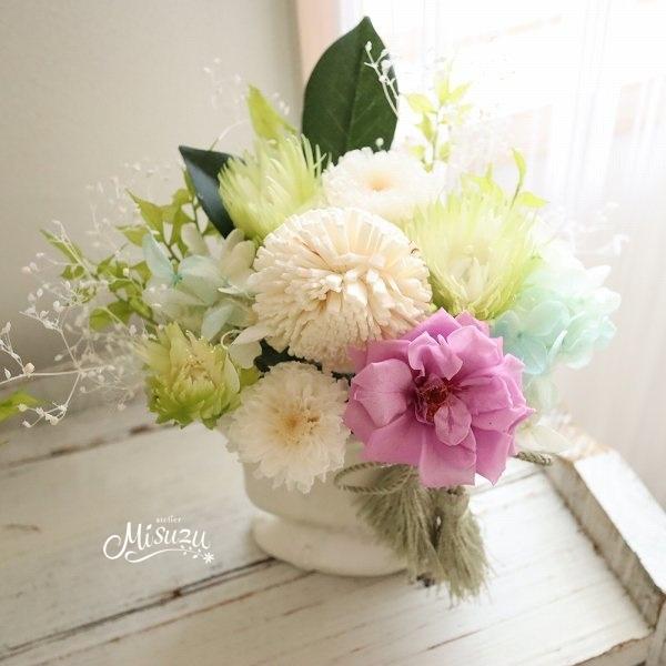 お供え お悔やみ 仏花 プリザーブドフラワー 花器付き 御供えアレンジ おもかげ1個 ケース入り 仏壇用 ブリザードフラワー お彼岸 花 お供え物 贈り物 s563001 case lobelia 通販 yahoo ショッピング