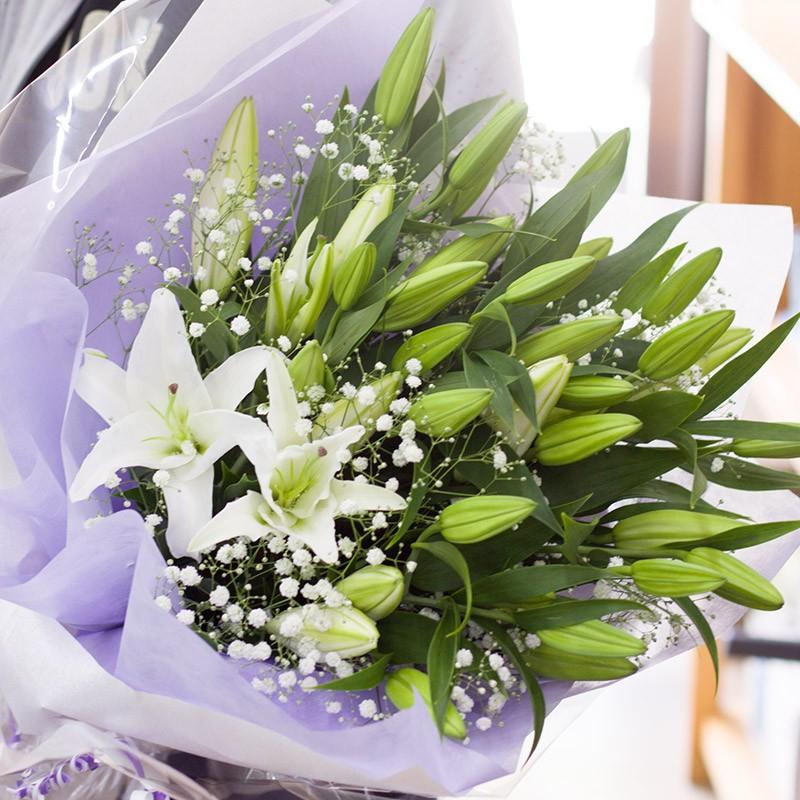 お供え 花 お供えの花 お悔み 供花 仏花 ユリ 旬のおまかせアレンジm