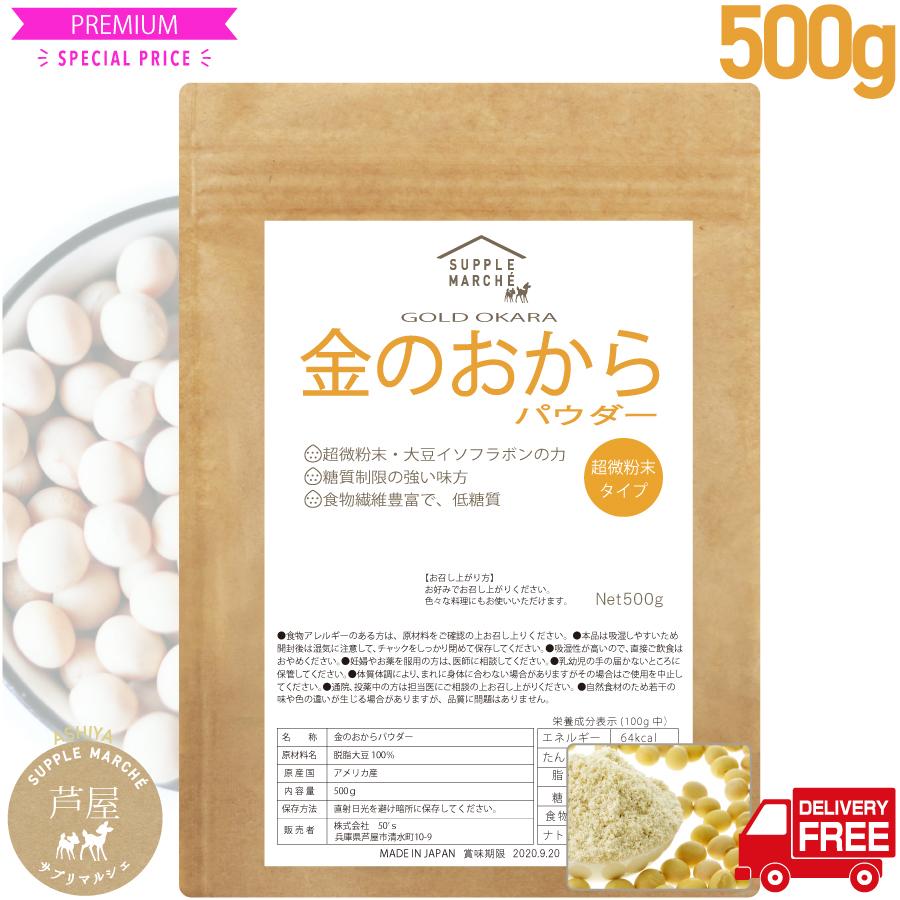 おからパウダー 国産 500g 送料無料 超微粉 国産大豆100 遺伝子組換え不使用