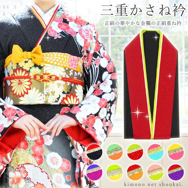 振袖用 重ね衿 三重 かさね衿 正絹 金襴4way 13903 伊達衿 和装小物 重ね襟 リバーシブル 日本製