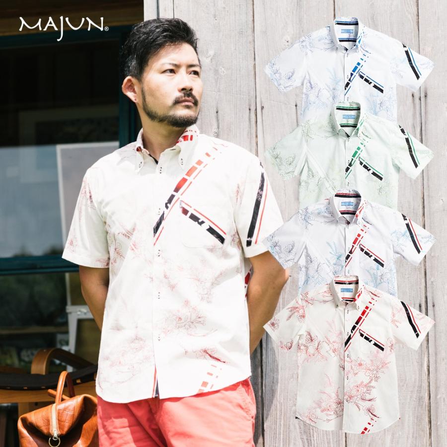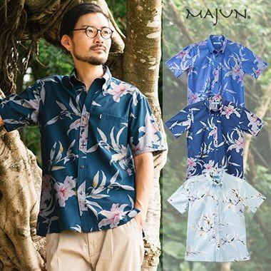 かりゆしウェア 沖縄版 アロハシャツ majun マジュン メンズ 半袖シャツ ボタンダウン 送料 代引手数料無料 ポーセリリーバイアス 19b13bd3 majun ヤフー店 通販 yahoo ショッピング