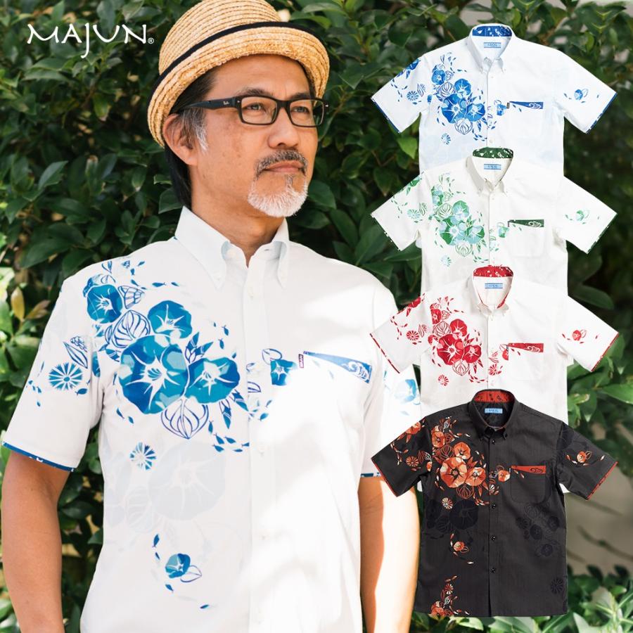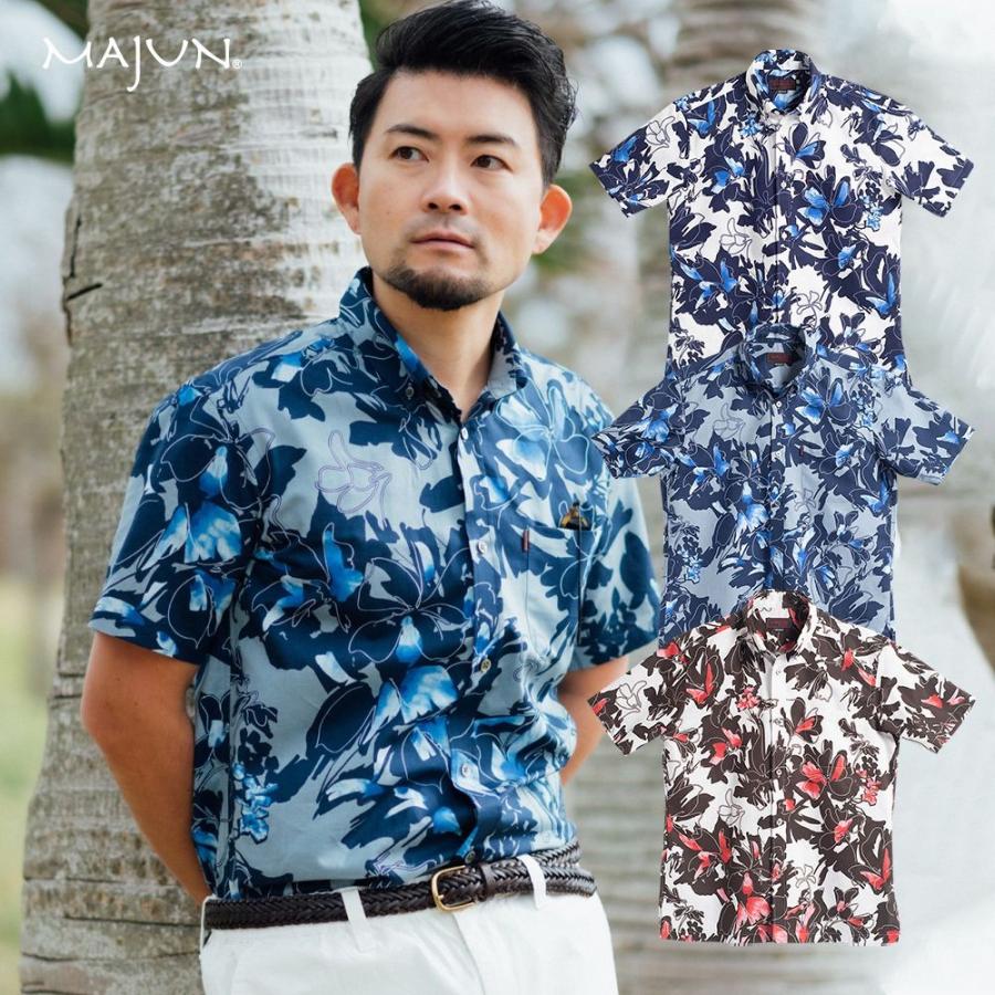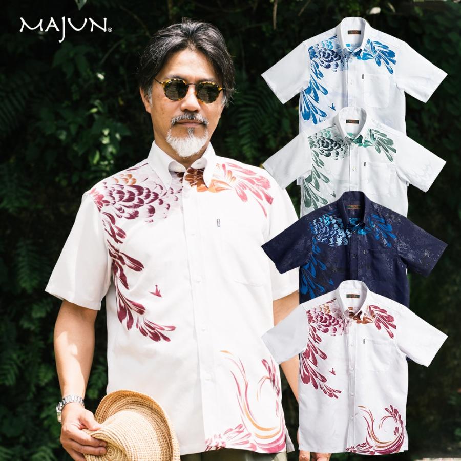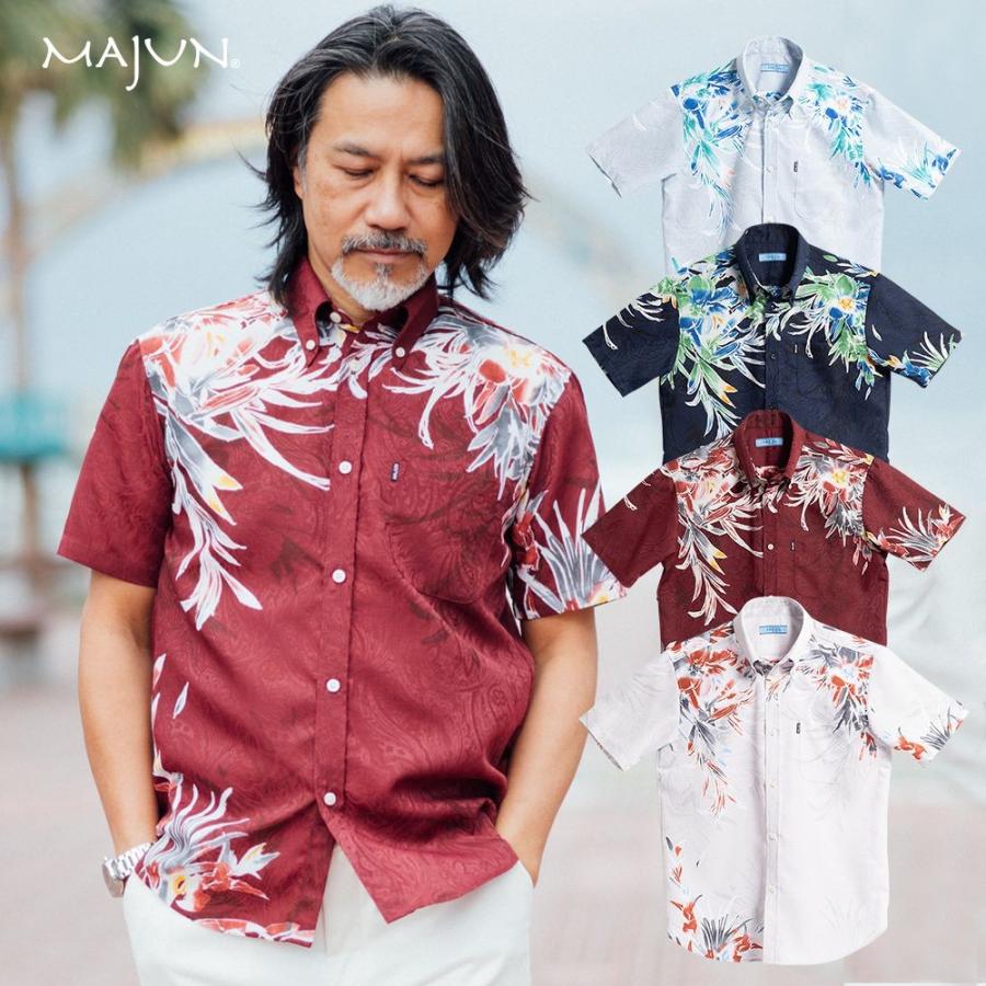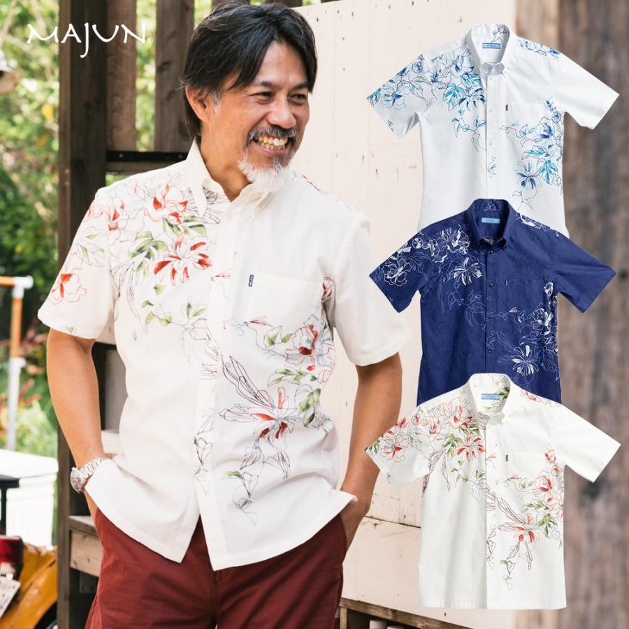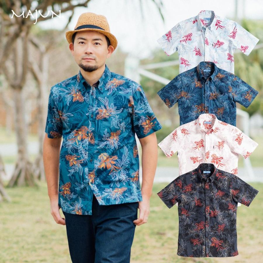 かりゆしウェア 沖縄 アロハシャツ majun マジュン かりゆし 結婚式 メンズ半袖シャツボタンダウン 送料 代引手数料無料 デイゴフラッター amb20013s majun ヤフー店 通販 yahoo ショッピング