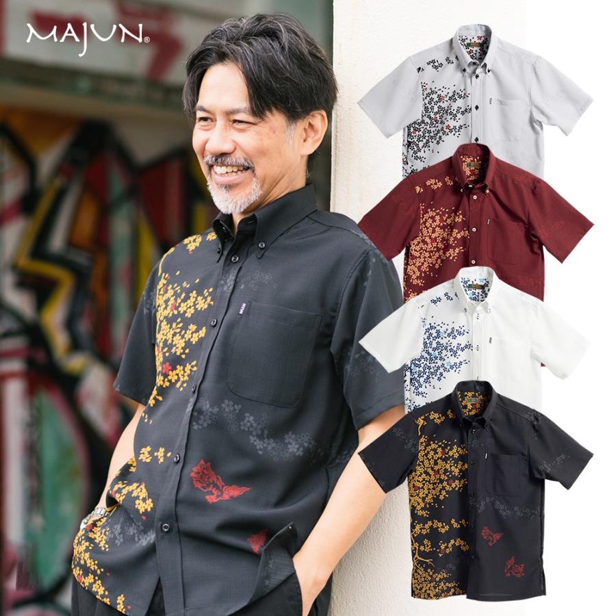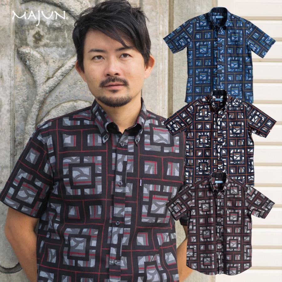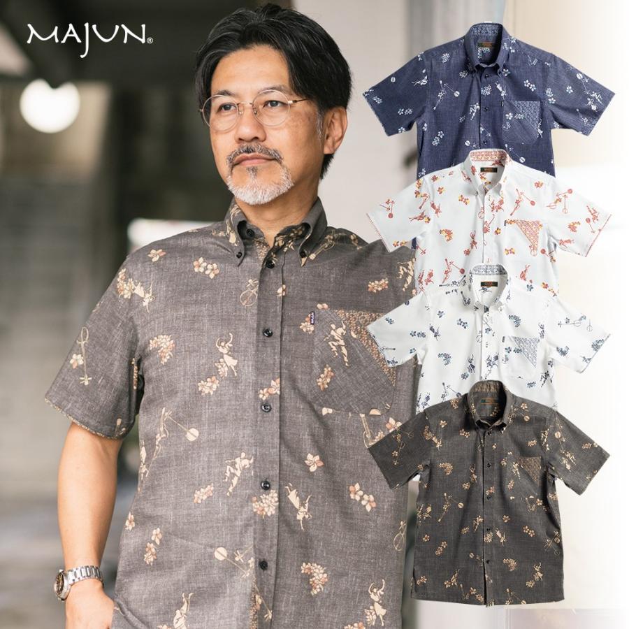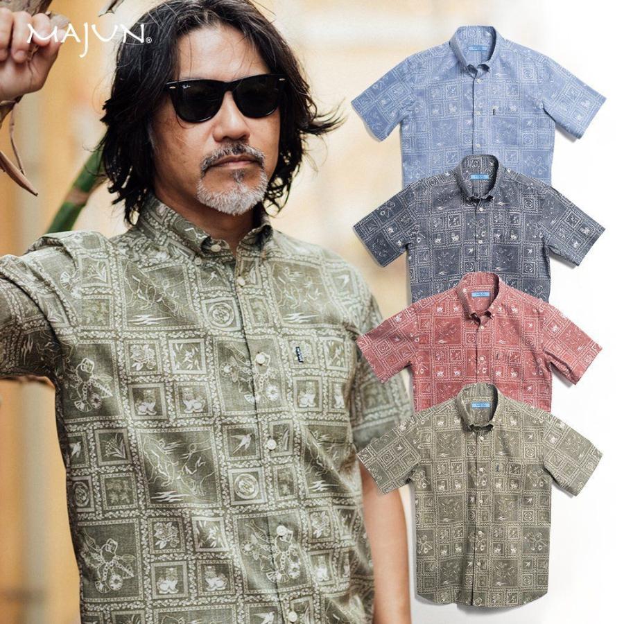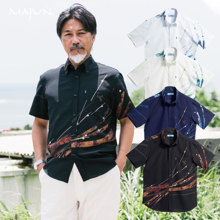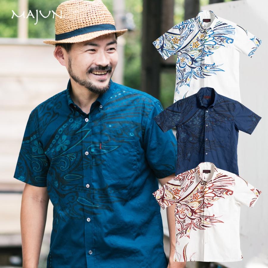 かりゆしウェア 沖縄版 アロハシャツ majun マジュン メンズ 半袖シャツ ボタンダウン 送料 代引手数料無料 カチャーシーサウンド 19g41bd3 majun ヤフー店 通販 yahoo ショッピング
