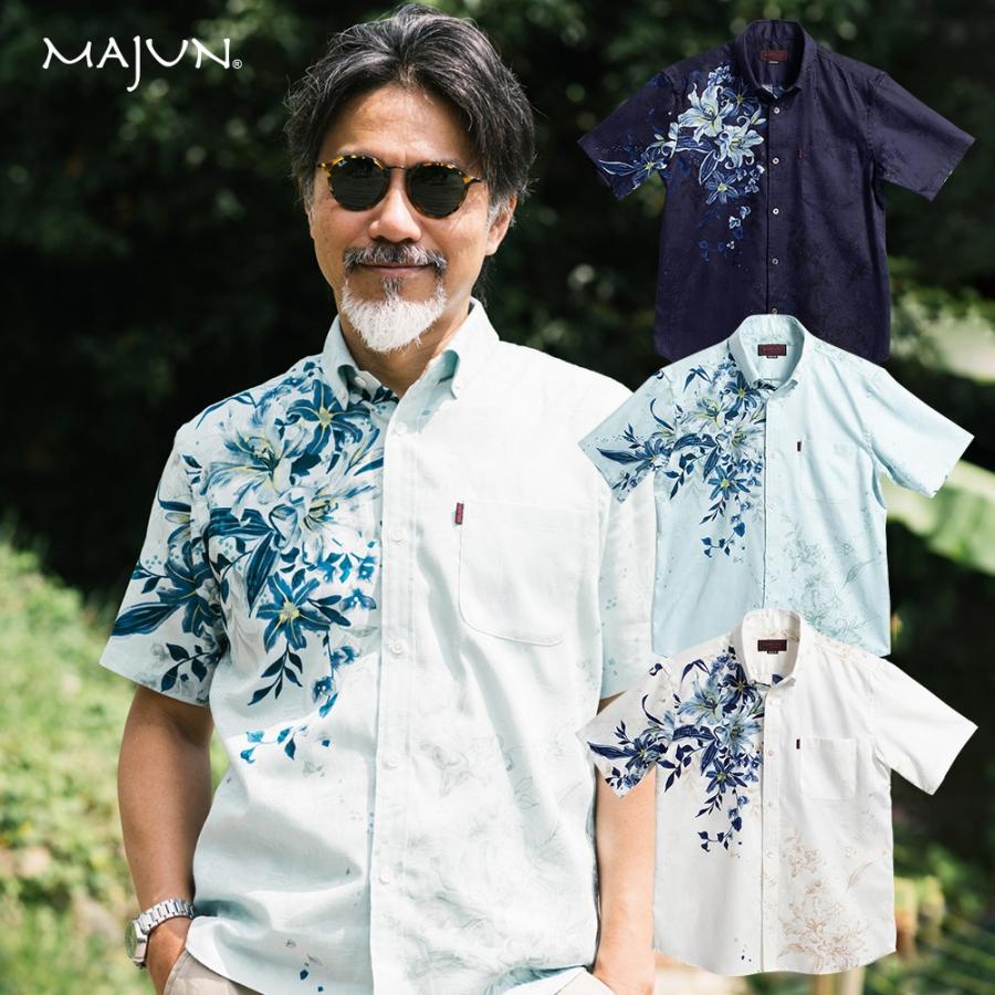 かりゆしウェア 沖縄版 アロハシャツ majun マジュン かりゆし 結婚式 メンズ 半袖シャツ ボタンダウン 送料 代引手数料無料 シルエットリリー 18b06bd3 majun ヤフー店 通販 yahoo ショッピング