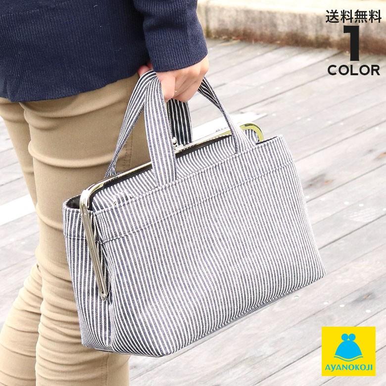 ayanokoji がま口手提げバッグ 綿布 ヒッコリー がま口バッグ がま口 ランチバッグ 布 通勤 かわいい 誕 受注生産品 b tesage hick1609 ayanokoji 通販 yahoo ショッピング