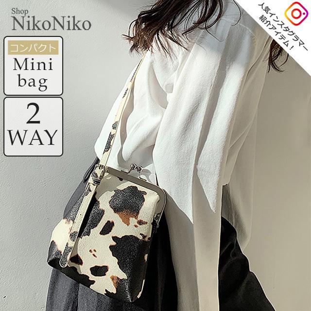 アニマル柄がま口バッグ 即納 バッグ ハンドバッグ ショルダー 鞄 アニマル 牛 がま口 個性的 トレンド 韓国ファッション レディース instagram 20awbacn904 shop nikoniko 通販 yahoo ショッピング