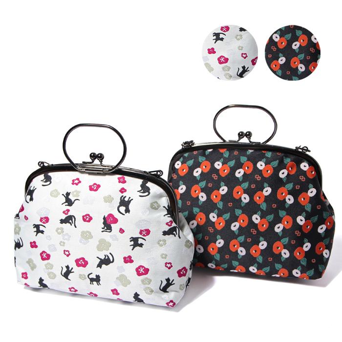 がま口バッグ クラッチバッグ ハンドバッグ ショルダーバッグ 使い方いろいろ 3way 猫 椿 帯地 15 セパレート着物 浴衣 和あらいや 通販 yahoo ショッピング