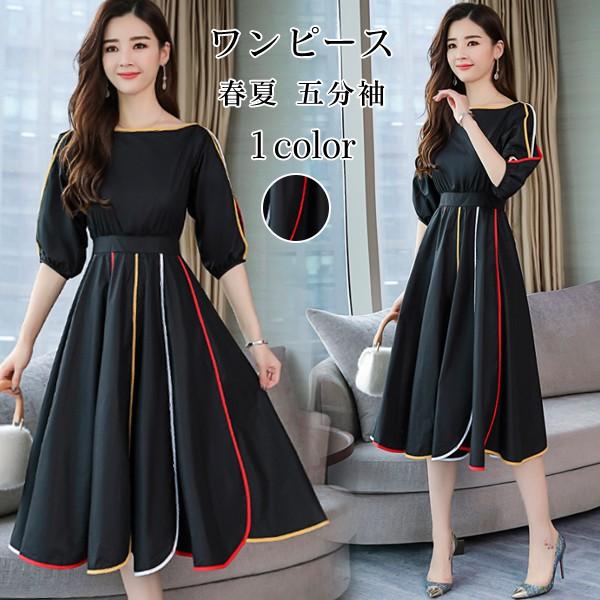 ワンピース レディース 40代 きれいめ 夏 マキシワンピース 五分袖 シフォン 無地 パーティードレス 韓国風 オシャレ ゆったり 通勤 大人 ol 上品 着痩せ 新品