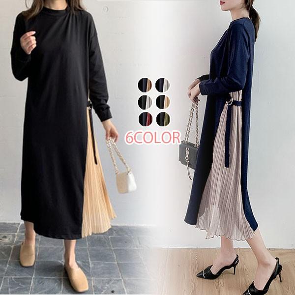 サイドプリーツワンピース レディース ミモレ丈 長袖 プリーツ ワンピース 切り替え きれいめ メール便のみ送料無料3 4月10日から20日入荷予定