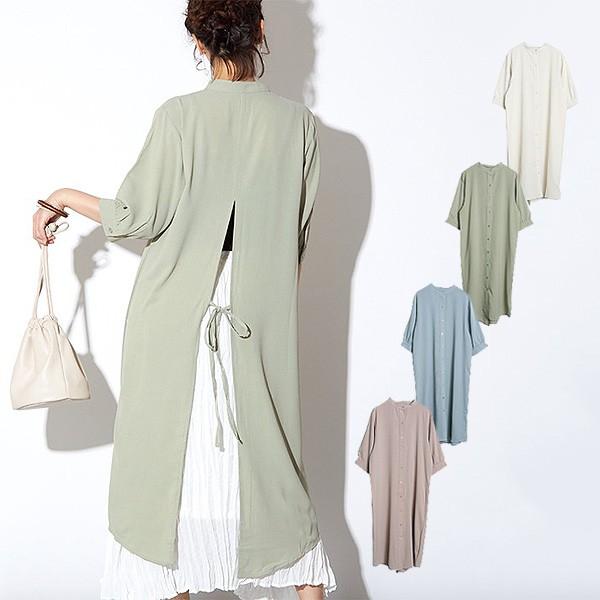 ワンピース シャツワンピース レディース きれいめ 上品 ロング丈 膝下 スリット 無地 7分袖 6分袖 春夏