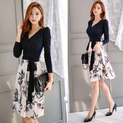 ドレスワンピース レディース カシュクール ワンピース 花柄 膝丈 バイカラー 40代 50代 ファッション 女性 上品 きれいめ ワンピ es 3477 jennie alice 通販 yahoo ショッピング