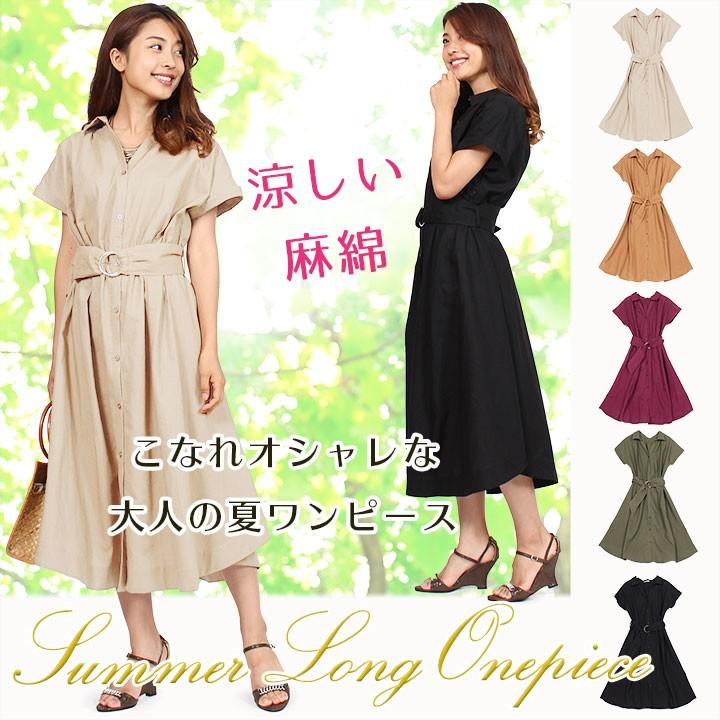 クール素材 ベルト付き ワンピース レディース ノースリーブ 涼しい きれいめ カジュアル 夏 バックスリット 2way 大人可愛い 30代 40代 50代 メール便対応可