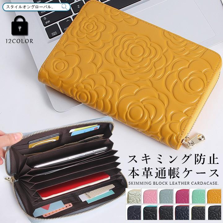 通帳ケース マルチケース 本革 レディース ポーチ 通帳入れ カードケース メンズ 大容量 ジャバラ スキミング防止 パスポート 花柄 磁気 カメリア ラム革 8055 スタイルオングローバル 通販 yahoo ショッピング
