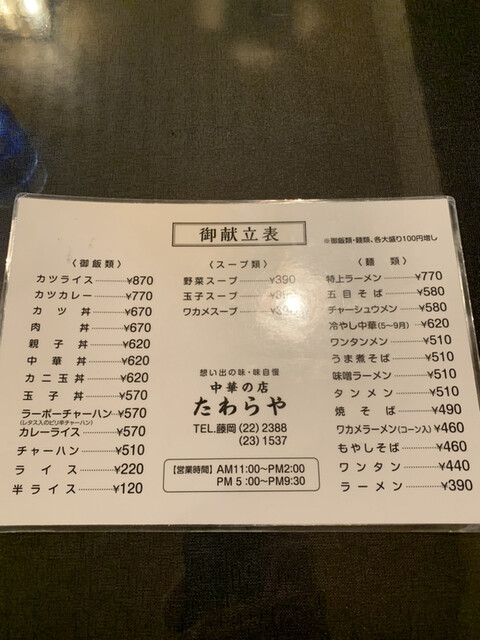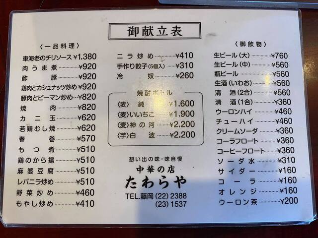 メニュー写真 たわらや 群馬藤岡 中華料理 食べログ