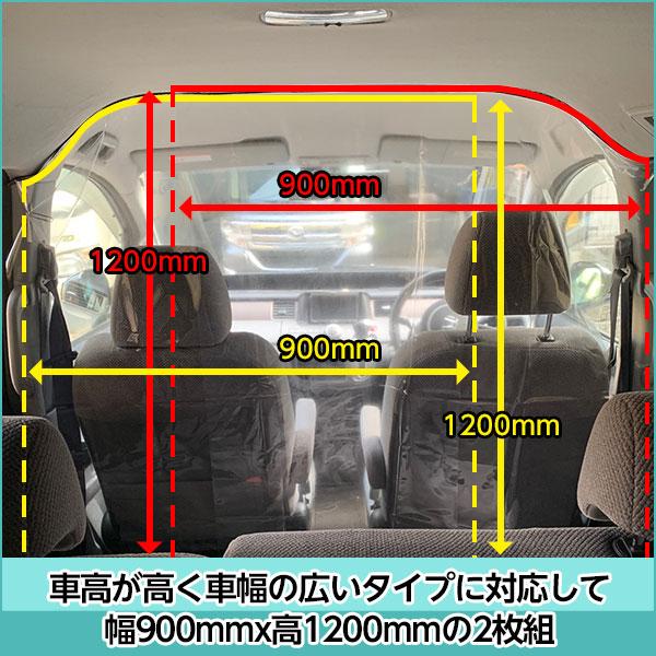 離島配送 沖縄配送 車内 パーテーション w900mm h1200mm 2枚組 飛沫防止 仕切 高透明 タクシー 介護 送迎 営業車 コロナ 分煙 冷房効率