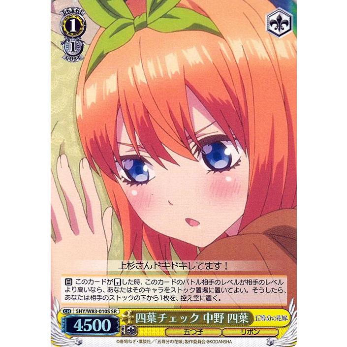 ヴァイスシュヴァルツ 五等分の花嫁 四葉チェック 中野四葉 sr 5hy w83 010s キャラクター 五つ子 リボン 黄 5hyw83 010s sr カードミュージアム yahoo 店 通販 yahoo ショッピング