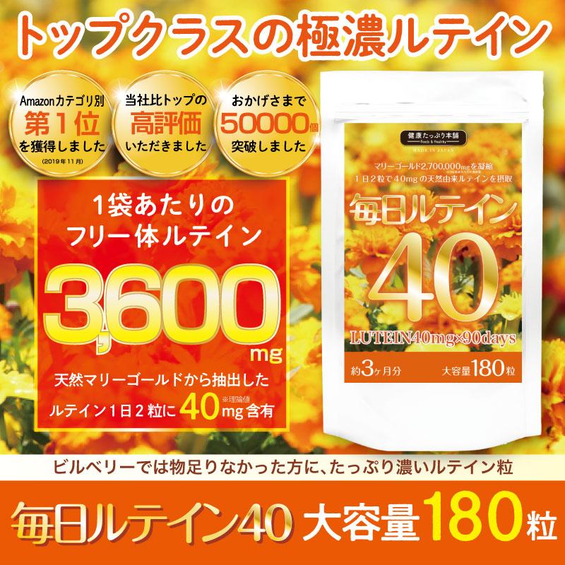 健康たっぷり本舗 毎日ルテイン40 大容量 約3ヶ月分 180粒 ルテイン 3600mg 高配合 高濃度 濃いルテイン ゼアキサチン マリーゴールド サプリ kth ml40 1 begrace yahoo 店 通販 yahoo ショッピング