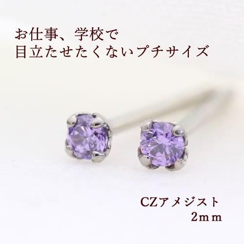 セカンドピアス 純チタンピアス czアメジスト2ミリ cr206 チタンピアスのなでしこスタイル 通販 yahoo ショッピング