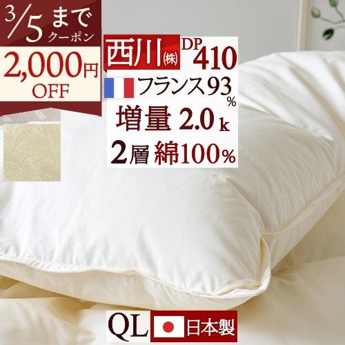 1500円引クーポン 羽毛布団 クィーン 西川 フランス産ダウン93 dp410 増量2 0kg 綿100 二層 2層式キルト 日本製 ふとんタウン 西川など寝具専門店 通販 paypayモール