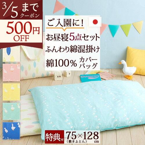 お昼寝布団セット 日本製 保育園 綿混 お昼寝布団5点セット 布団バッグ付 綿100 カバー 送料無料 お昼寝 ふんわり暖か ふとんタウン 西川など寝具専門店 通販 paypayモール