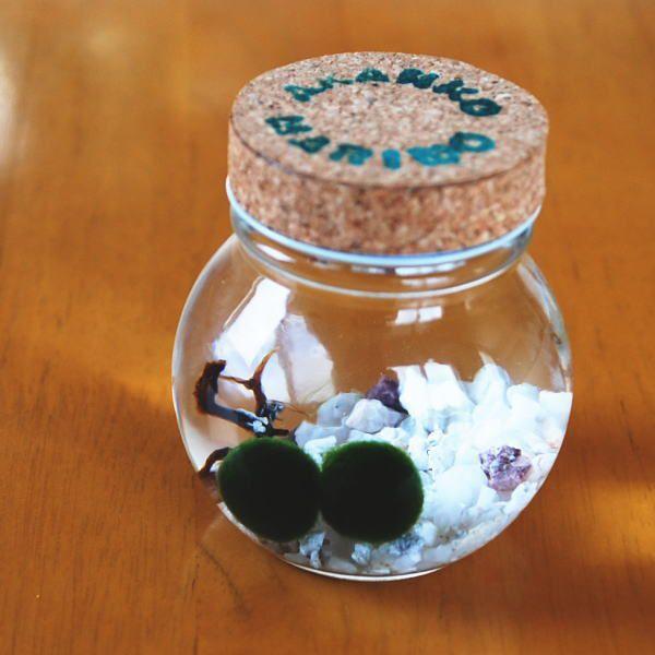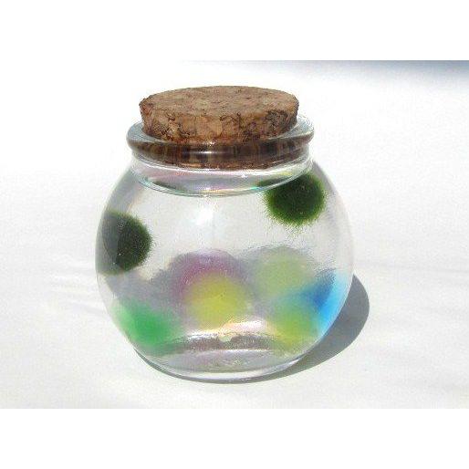 送料無料 養殖まりも5個入り ミネラル鉱石入り ガラス瓶 コルク マリモ 毬藻 水草 マリモ飼育説明書付