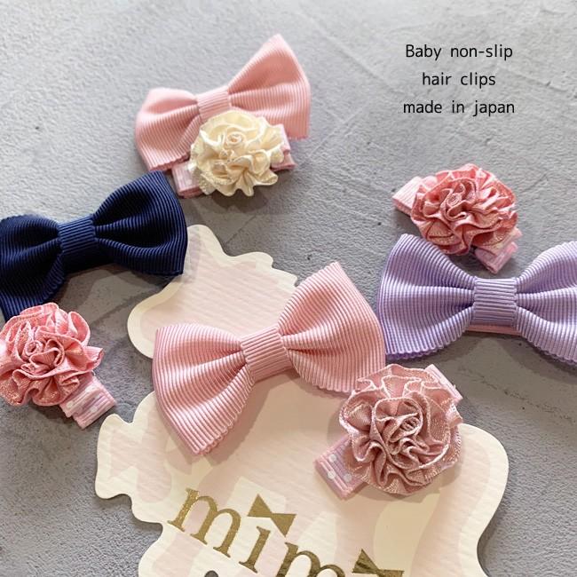 ベビー ヘアクリップ mimi ミミ グログランリボン リボン フラワー 2個セット 滑りどめ付 ベビーアクセ mimi0010 kufuu 通販 yahoo ショッピング