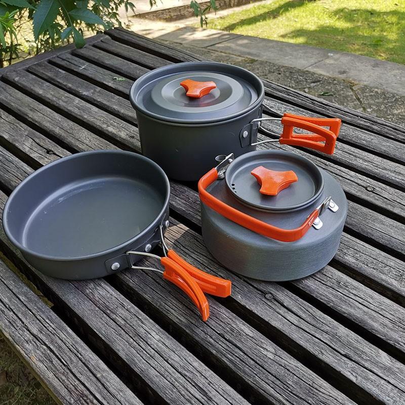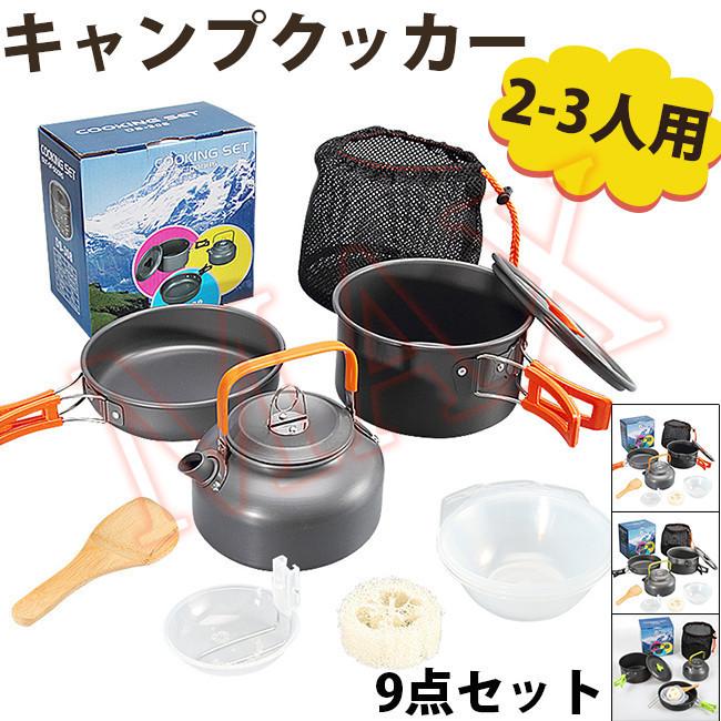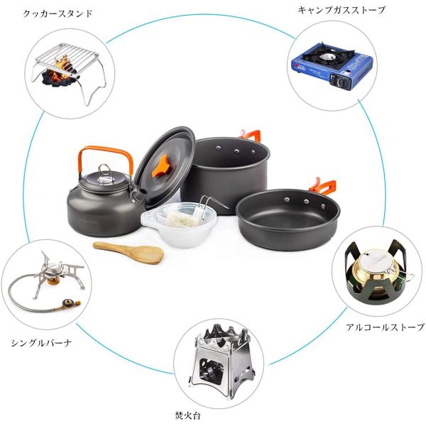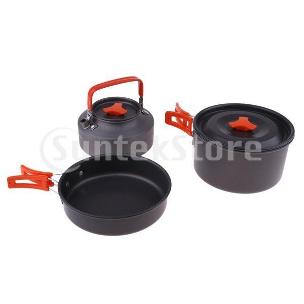 大特価 色オレンジ キャンプクッカー クッカーセット アルミクッカー アウトドア調理器具セット 登山用鍋 2 3人に適応 bbq