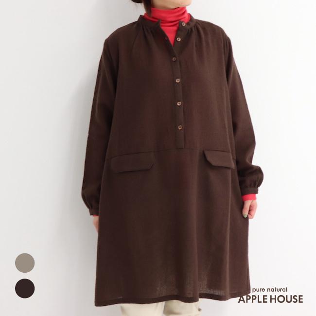 ワンピース 長袖 新作 綿麻 2020年秋 アップルハウスのフィジルワンピース 2020au205052 apple house yahoo 店 通販 yahoo ショッピング