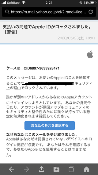 セキュリティ上の理由により apple idがロックされています というメールに注意 はまったり
