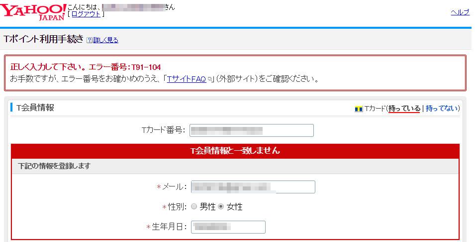 tカードを登録しようとして tカードを作ったときと同じ生年月日を入力しても yahoo 知恵袋