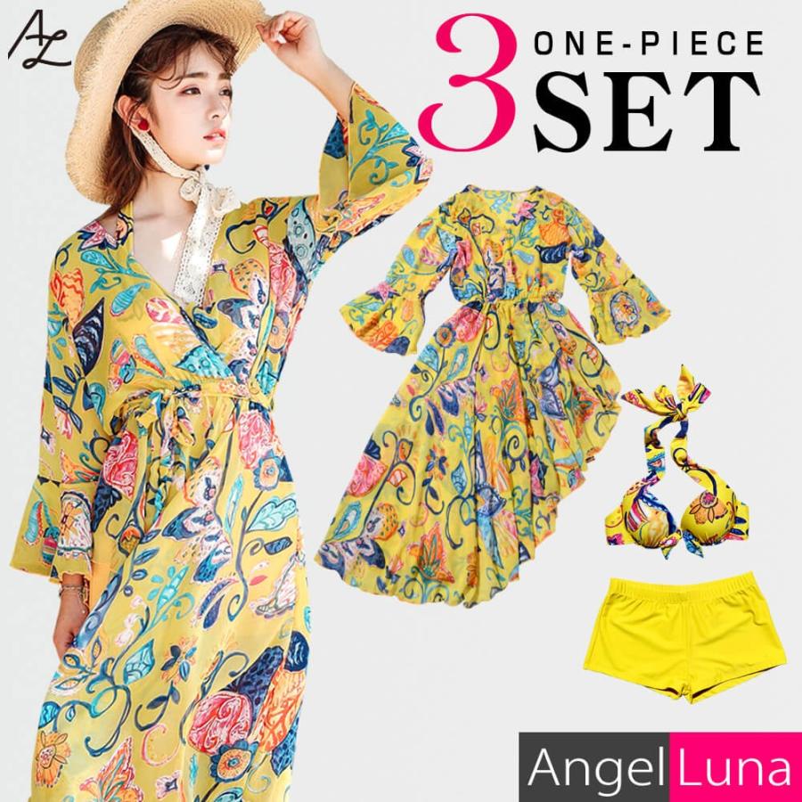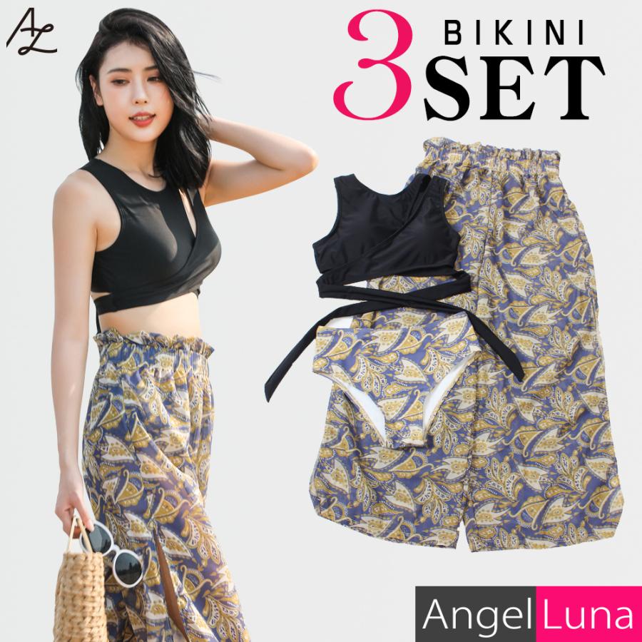 水着 レディース ビキニ ワイドパンツ ハイウエストショーツ 上下3点セット ノンワイヤー パット入り ベージュ カーキ シフォン素材 m l ll メール便y al77803 水着専門店エンジェル ルナ 通販 yahoo ショッピング
