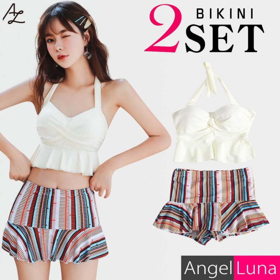 水着 レディース ビキニ水着 フリル 体型カバー ワイヤー入 パット付 ショートパンツ付 バンドゥビキニ リーフ柄 花柄 ホワイト グリーン メール便y al75391 水着専門店エンジェル ルナ 通販 yahoo ショッピング