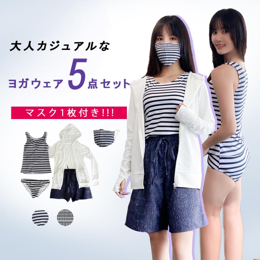 スポーツウェア ヨガウェア レディース 上下セット おしゃれ かわいい 5点セット ボーダー エスニック ホワイト ブラック フィットネス 女性 メール便y al77893 水着専門店エンジェル ルナ 通販 yahoo ショッピング