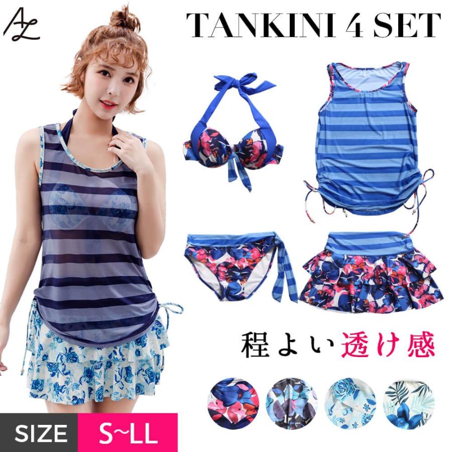 水着 レディース 体型カバー タンキニ ビキニ スカート 4点セット ママ水着 大きいサイズ セパレート ワイヤー入り フリル ボーダー柄 蝶々柄 花柄 s 宅配便 jge 水着専門店エンジェル ルナ 通販 yahoo ショッピング