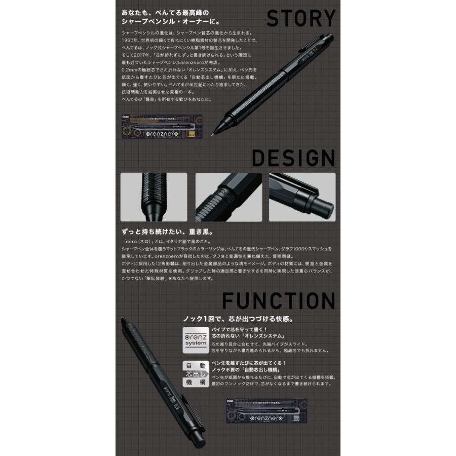 メール便対応不可 ぺんてる シャープペンシル orenznero オレンズネロ 0 2 0 3mmのシャーペン pp3002 pp3003