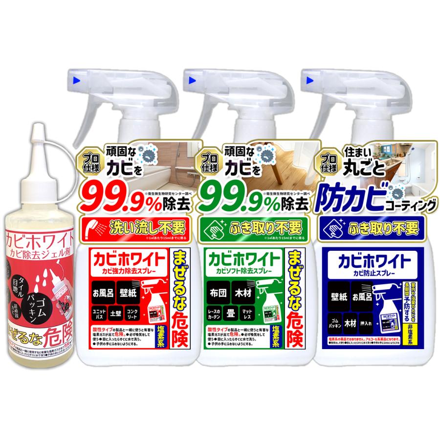 カビ取りと防カビの決定版 カビホワイト4点セット カビ除去ジェル180g ソフト除去450ml 強力除去450ml 防止450ml ビーワンショップ 03kabi kabi4 ビーワンショップ 通販 yahoo ショッピング