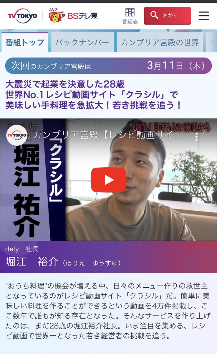 カンブリア宮殿 yahoo テレビ gガイド テレビ番組表 見逃し配信情報や番組詳細も
