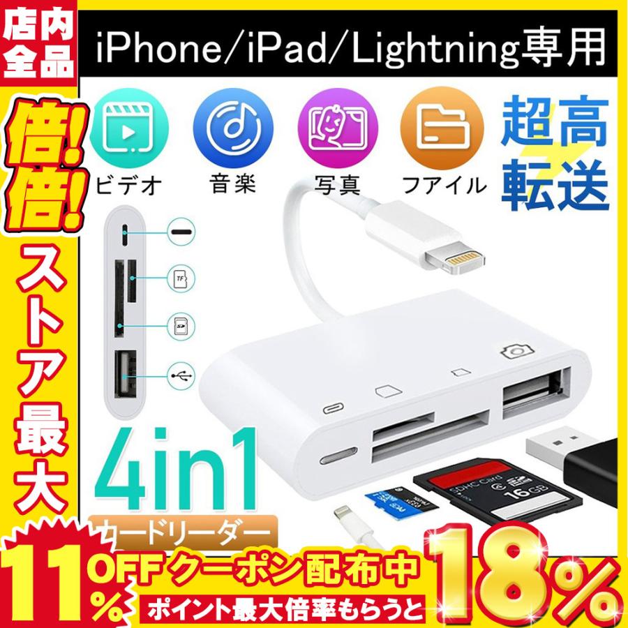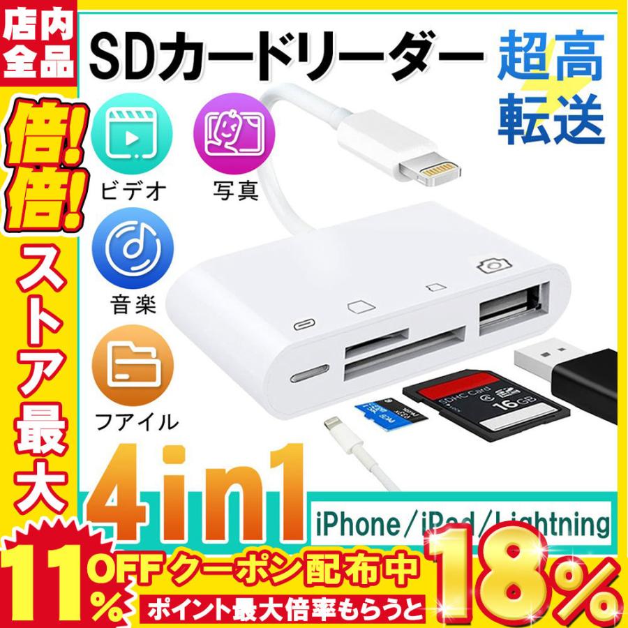 sdカードリーダー iphone ipad 専用 usbポート付き lightning 4in1 sd tfカード カメラリーダー d825 usb wh s 二丁目商店 通販 yahoo ショッピング