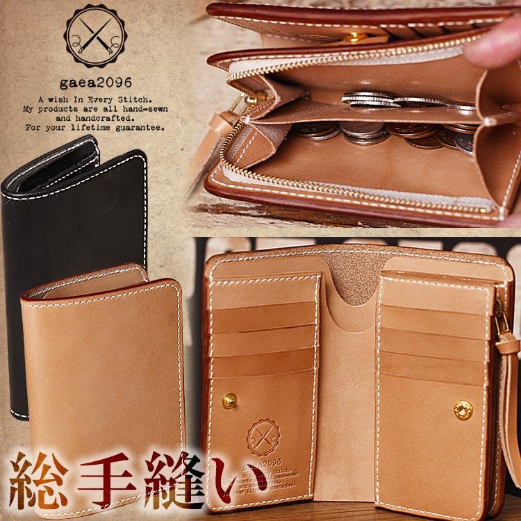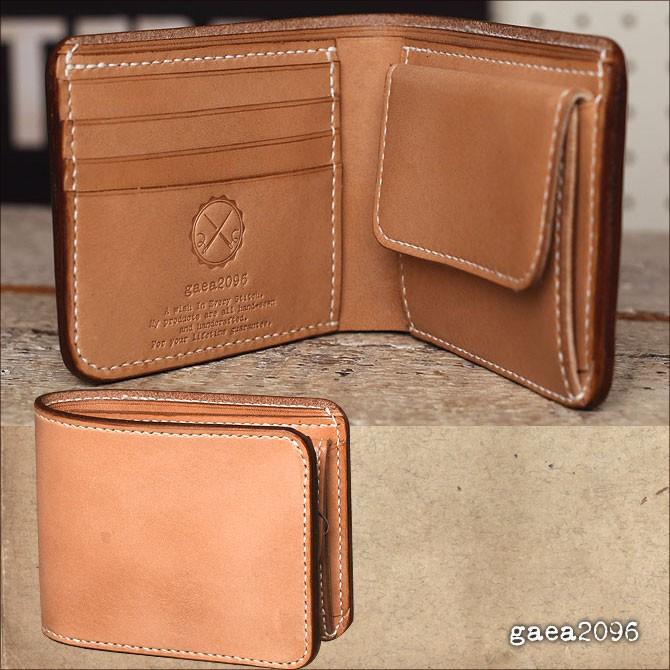 ヌメ革 財布 メンズ 二つ折り 手縫い ミドルウォレット 栃木レザー ボックス小銭入れタイプ ガイア2096 ヌメ革財布 レザーの財布 革 財布 メンズ