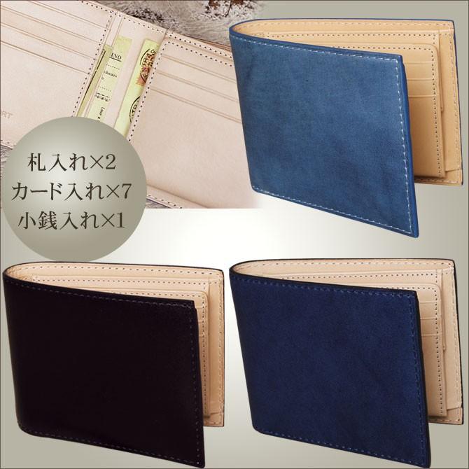 ヌメ革 財布 メンズ 二つ折り 手縫い ミドルウォレット 栃木レザー ボックス小銭入れタイプ ガイア2096 ヌメ革財布 レザーの財布 ミドルウォレット