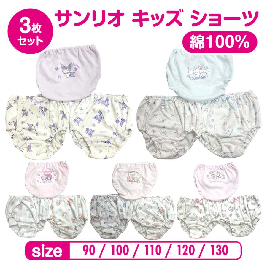 サンリオ キッズ ショーツ 3枚セット 90cm 100cm 110cm 120cm 130cm 140cm キティ マイメロディ シナモン 下着 パンツ 肌着 女の子 子供 女児 10010576 zakka off 通販 yahoo ショッピング