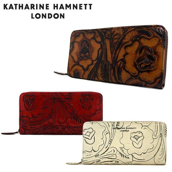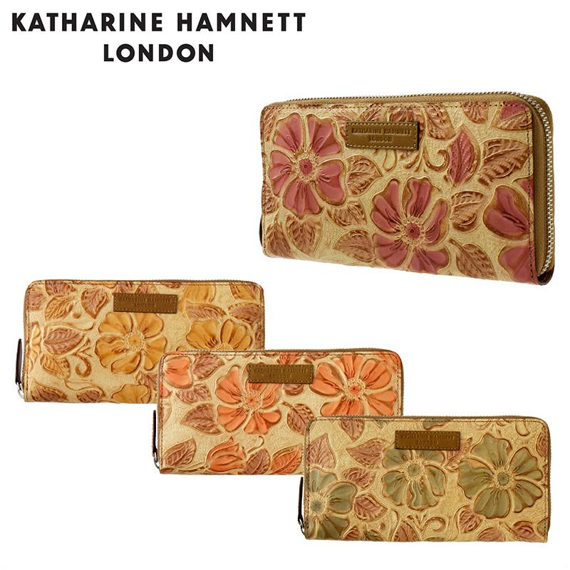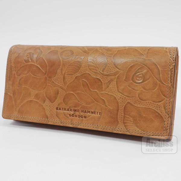 アウトレット品 キャサリンハムネット katharine hamnett 長財布 レディース キャメル 薔薇 型押し エバ シリーズ 訳あり khp306 75 s61284