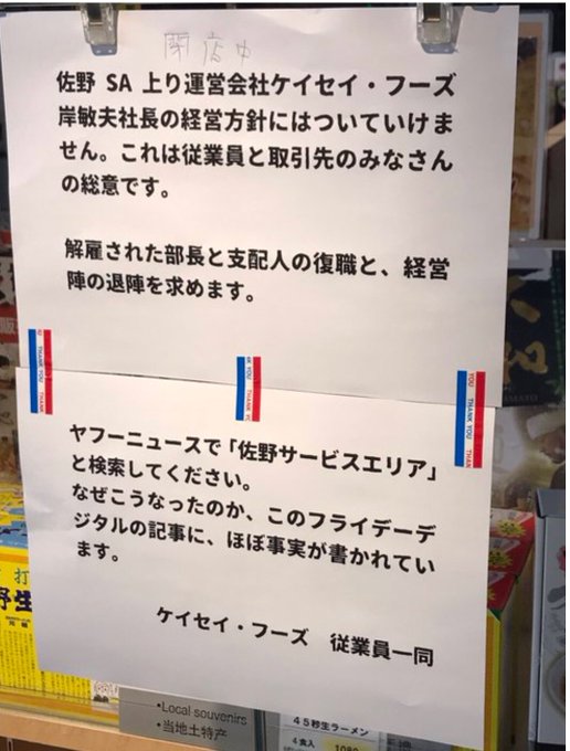 佐野サービスエリア sa 運営会社倒産の危機でストライキに発展 ボイコットの理由や経営陣の退陣求める貼り紙 ガールズアワー girls hour
