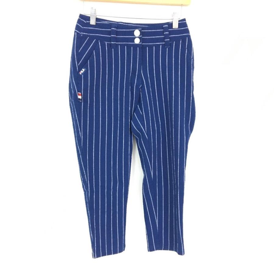 美品 fila golf フィラゴルフ 七分丈パンツ ネイビー 白 ストライプ サッカー生地 レディース s ゴルフウェア 1 240001042482 レオナード 通販 yahoo ショッピング