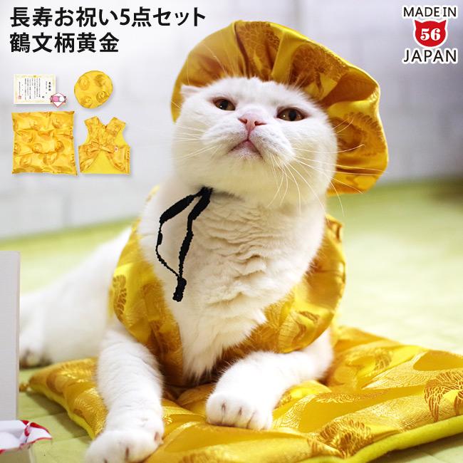 ゴロにゃんオリジナル 猫服 豪華長寿服セット 鶴文柄黄金 30348 12090 02 56nyan 猫用品ゴロにゃんヤフー店 通販 yahoo ショッピング