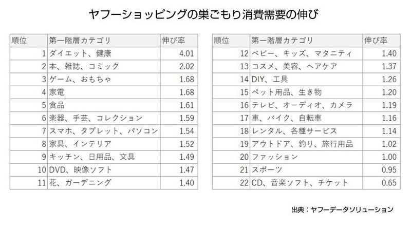 yahoo ショッピングに見る巣ごもり消費の動向 ダイエット 健康カテゴリーが約4倍に ヤフー調べ markezine マーケジン