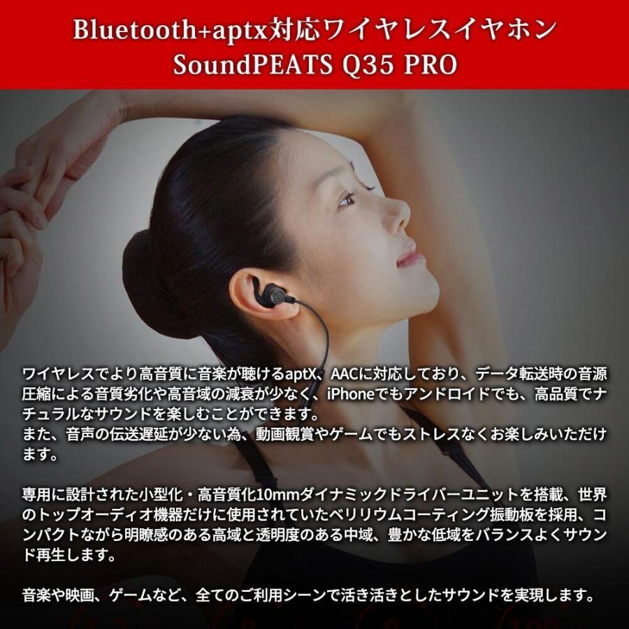 soundpeats サウンドピーツ q35pro bluetooth イヤホン aac apt xコーデック対応 高音質 低遅延 10mmドライバー採用 8時間連続再生 ipx6防水 マグネット内蔵 ハンズフリー通話 cvc6 0 ノイズキャンセリング搭載 bluetooth 4 1