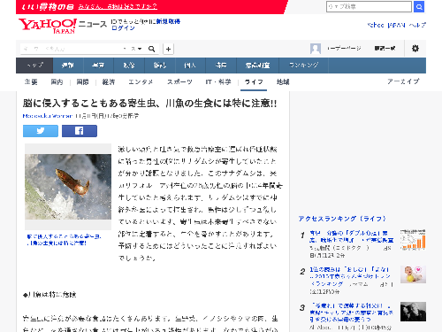 暮らし 脳に侵入することもある寄生虫 川魚の生食には特に注意 ポイントニュース