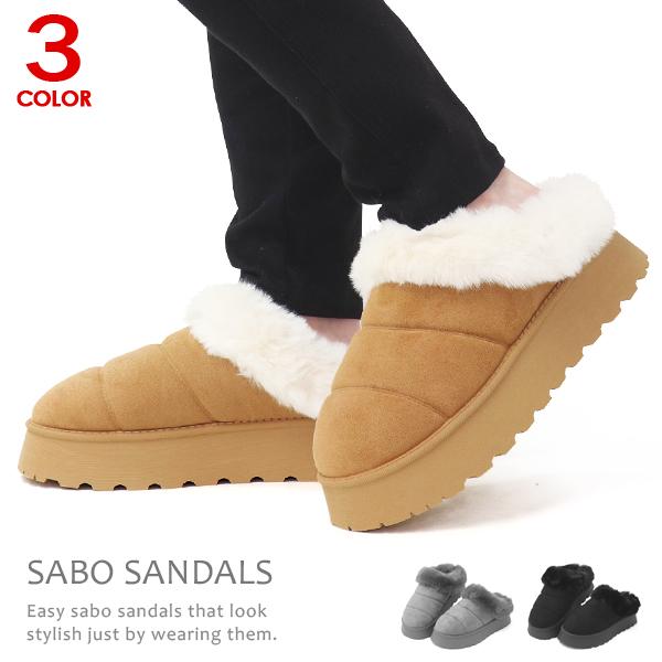 ファー付き 厚底 サボ サンダル no 1220 2color サボサンダル ミュールサンダル 軽量ソール 秋 冬 厚底サンダル 1220 シューズ ビスタ ヤフー店 通販 yahoo ショッピング